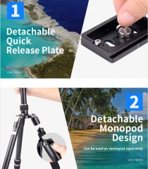 Trépied 2-en-1 de 1,57 m avec rotule panoramique