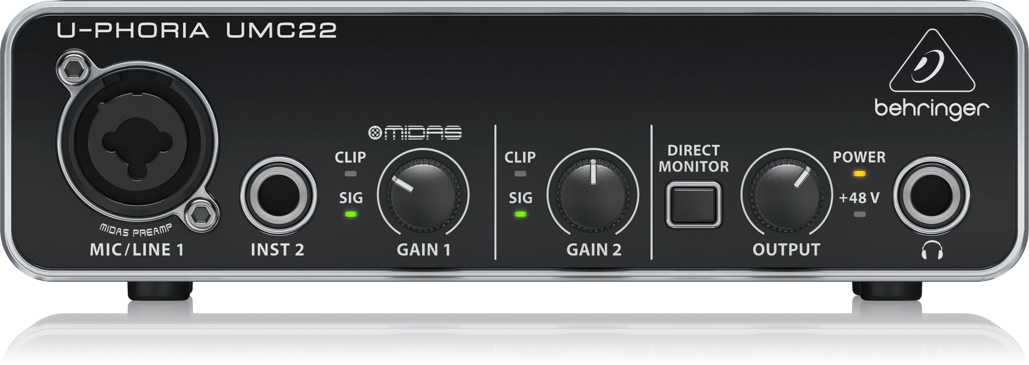 Lorsqu'il est temps d'établir un historique d'enregistrement, vous avez besoin de la meilleure interface audio possible – et vous avez besoin d'une interface sur laquelle vous pouvez compter. C'est pourquoi nous allons encore plus loin avec l'incroyable UMC22, une interface audio USB ultra-compacte 2 x 2, 48 kHz avec un préampli micro de qualité professionnelle conçu par Midas, une entrée combinée XLR/TRS pour votre entrée vocale ou ligne. et une entrée d'instrument ¼" supplémentaire (aucun boîtier DI requis). Le riche ensemble de fonctionnalités, qui dispose également d'une puissante sortie casque pour le monitoring direct de votre session, ainsi que de 2 sorties et d'une alimentation fournie par USB, fait de l'UMC22 le meilleur, et l'interface d'enregistrement la plus portable de sa catégorie !